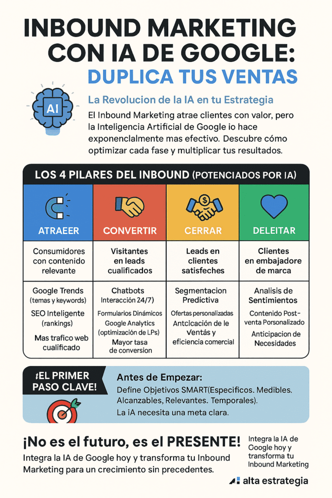 El inbound marketing se centra en atraer clientes a través de contenido relevante y valioso. Integrar la inteligencia artificial de Google optimiza este proceso, mejorando la eficiencia y efectividad de las estrategias. Esta guía paso a paso proporcionará un enfoque práctico para implementar tácticas de inbound marketing utilizando herramientas de IA. Se explorarán desde la definición de objetivos hasta la fidelización de clientes, cubriendo cada aspecto fundamental de esta metodología.
